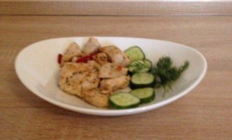 • Поджарить до румяного состояния, добавить огурчик (он очень освежает при остроте и дарит волшебные ощущения от всего блюда), зелень по желанию. Я не солила, мне кажется соль разрушает композицию аромата и заглушает вкус самой индейки.