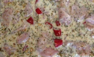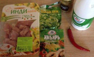 • Технология самая простая. Индейку промыть, убрать подложку, залить кефиром, добавить горчицу, базилик, имбирь и перец (я предпочитаю резать крупными кусочками, чтобы легко убрать при необходимости и снизить остроту). Дать постоять минут 10-20.