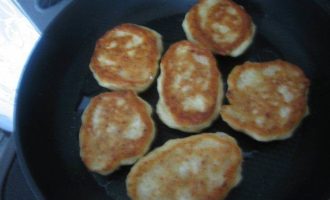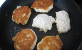 • Жарить на разогретом растительном масле. Выкладывать оладьи ложкой, предварительно обмакнув её в воду, на маленьком огне под закрытой крышкой. Это с мясом.