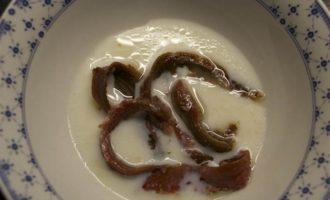 • Замочить филе анчоусов в 1 столовой ложке молока, накрыть и оставить.