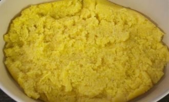 • Затем выложить поленту в смазанное жиром огнеупорное блюдо, выровнять поверхность и выпекать в духовке 25 минут.
