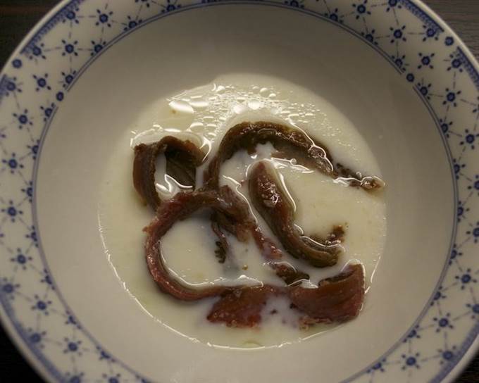 • Замочить филе анчоусов в 1 столовой ложке молока, накрыть и оставить.