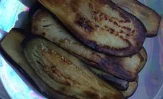 • Обжаренные баклажаны сложить в тарелку и дать «отдохнуть».