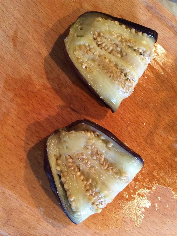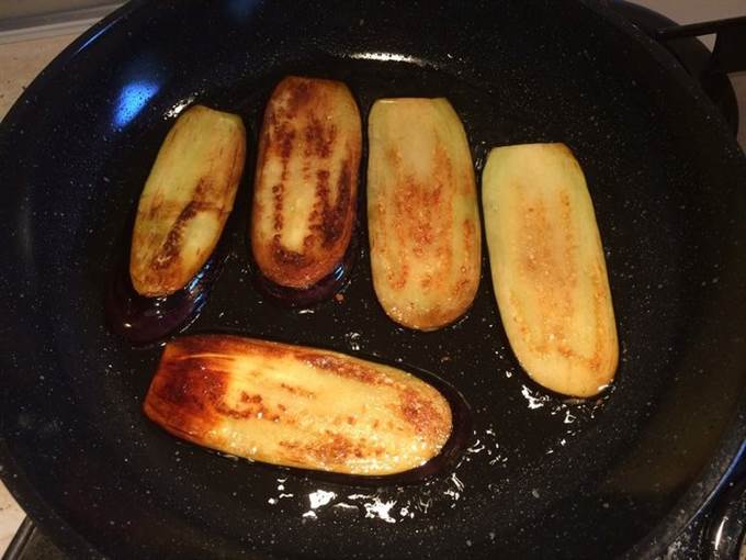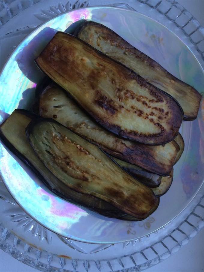 • Обжаренные баклажаны сложить в тарелку и дать «отдохнуть».