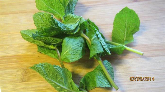 Пока баклажаны готовятся, сделаем заправку для них. У мяты листочки отделяем от стеблей и режем крупно. Зеленый лук рубим мелко (у меня его в этот раз не оказалось под рукой).