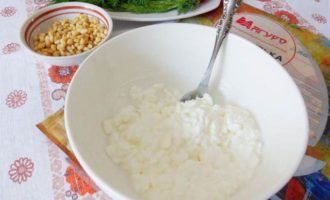 • Кедровые орешки тоже отправить в миску. Влить столовую ложку оливкового масла.