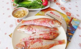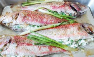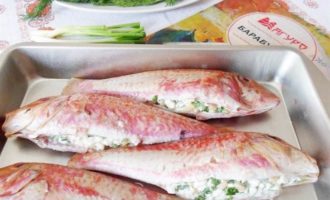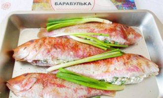 • Подготовленной начинкой нафаршировать брюшко каждой барабульки.