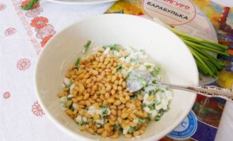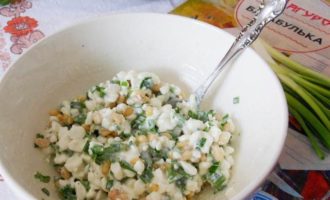 • Все тщательно перемешать. Посолить, поперчить по вкусу.