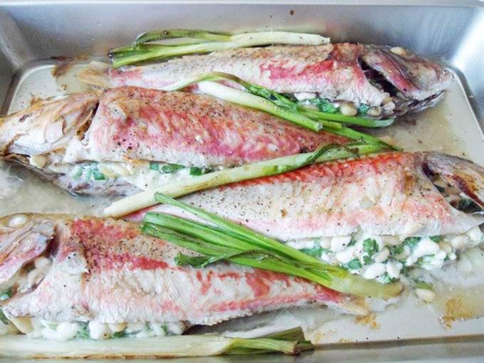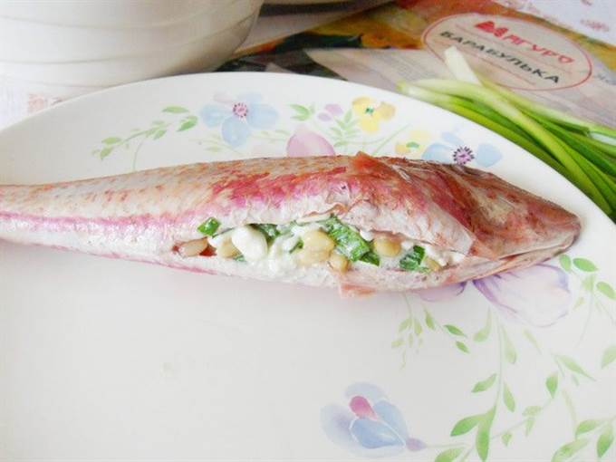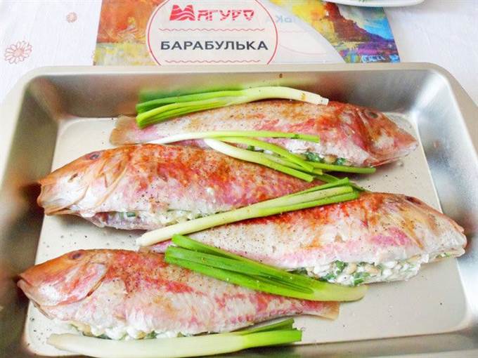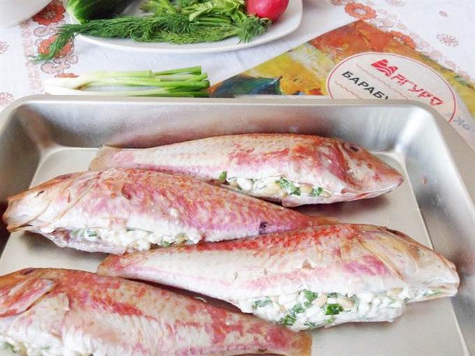 • Подготовленной начинкой нафаршировать брюшко каждой барабульки.