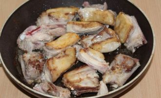 Баранину обжарить на раскаленном масле до золотистой корочки.