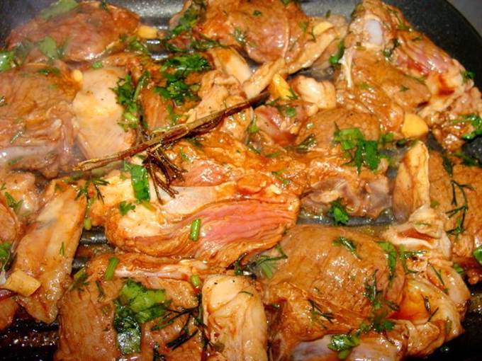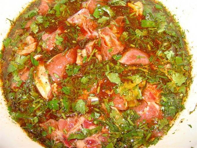 Оставшийся маринад довести до кипения. Варить 5-7 минут. Можно подать к мясу.