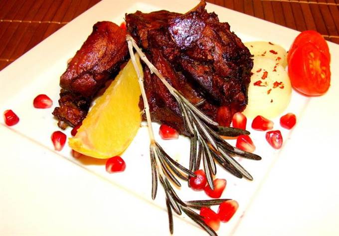 У меня был поясничный отдел молодого барашка. Разрезать на кусочки по косточкам.