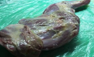 • Баранью ногу хорошо промыть и обсушить. Смазать ее солью и горчицей.