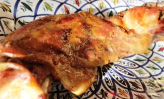 • Через 1,5 часа снять верхний слой фольги (на фото баранья нога после 1,5 часов ее запекания под фольгой), смазать ногу второй ложкой меда и запекать еще 30 минут, чтобы она хорошо подрумянилась.