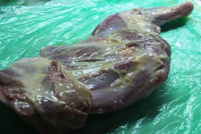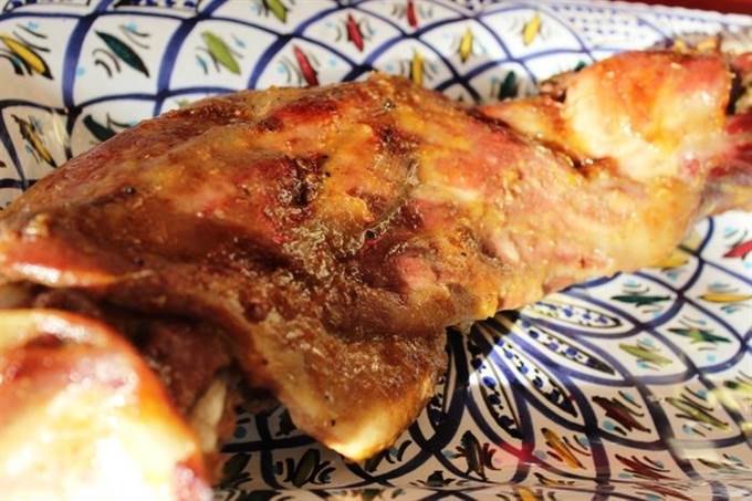 • Баранью ногу хорошо промыть и обсушить. Смазать ее солью и горчицей.