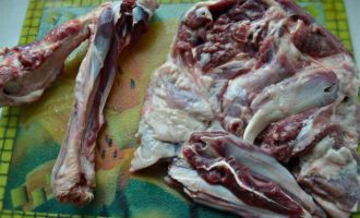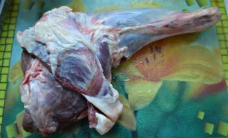 • Хорошо бы покупая баранью ногу, попросить мясника удалить кость, оставив только берцовую часть кости. Мне пришлось самой с помощью ножа аккуратно удалить всю полностью кость и только после этого отделить необходимую мне часть, которую я в дальнейшем использую при формировании рулета-ноги.