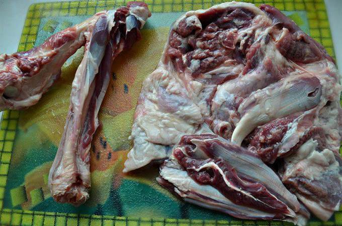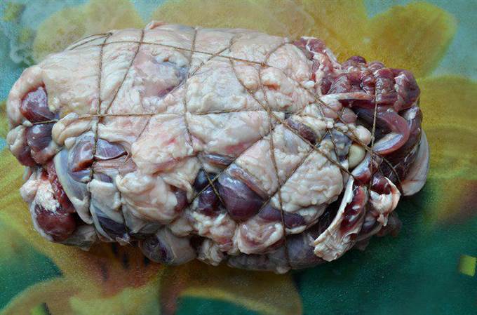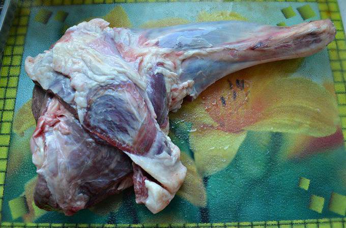 • Хорошо бы покупая баранью ногу, попросить мясника удалить кость, оставив только берцовую часть кости. Мне пришлось самой с помощью ножа аккуратно удалить всю полностью кость и только после этого отделить необходимую мне часть, которую я в дальнейшем использую при формировании рулета-ноги.