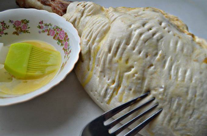 Взбить яйцо и смазать им тесто. Теперь баранью ногу необходимо запечь второй раз. Ставим снова её в разогретую до 180 г духовку на 45 мин.