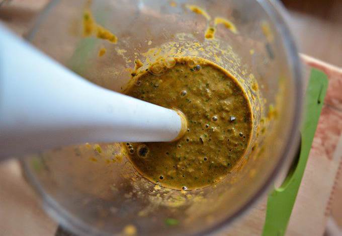 • Все ингредиенты сложить в миску и взбить блендером. Подобный рецепт топенадо я уже публиковала. Вы можете его использовать не только к бараньей ноге, но также и в качестве готовой закуски — намазывать на хлеб или тосты. Поэтому, если у вас получится много топенадо, то он у вас не пропадёт!