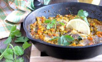 • Выложить соус на рыбное филе, поставить сковороду в духовку, разогретую до 200 град. на 25 минут.