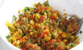 • Выложить в миску, добавить оливковое масло, лимонный сок, паприку, посолить по вкусу. Перемешать.