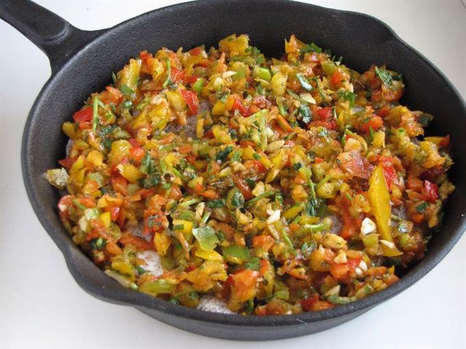 • Выложить соус на рыбное филе, поставить сковороду в духовку, разогретую до 200 град. на 25 минут.