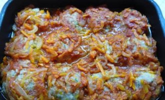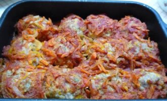 Достаем биточки из духовки, выкладываем сверху соус и опять ставим в духовку на 10 — 15 минут. Соус должен покрывать биточки полностью, тогда они пропитаются и станут более нежными.
