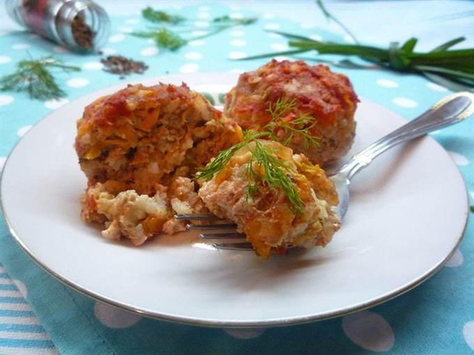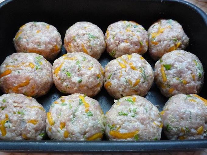 Формируем небольшие биточки, укладываем их в форму для запекания и отправляем в заранее разогретую духовку. Запекаем биточки при температуре 180°С 30 минут.