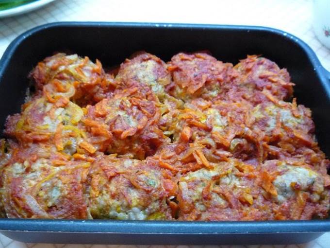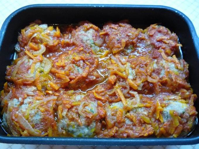 Достаем биточки из духовки, выкладываем сверху соус и опять ставим в духовку на 10 — 15 минут. Соус должен покрывать биточки полностью, тогда они пропитаются и станут более нежными.