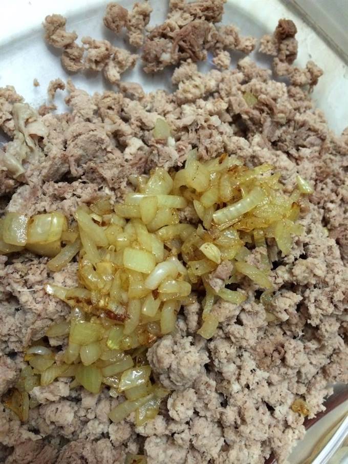 Для приготовления начинки отварите мясо, добавив в бульон соль и душистый перец. Готовое мясо пропустите через мясорубку.