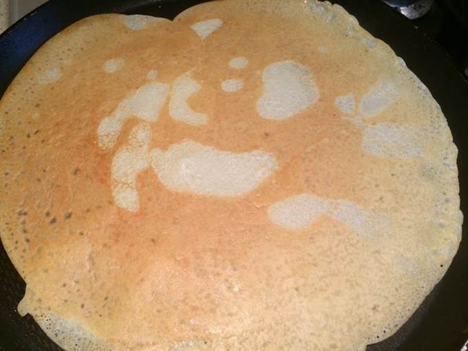 На разогретой сковороде испеките 10 румяных блинчиков.