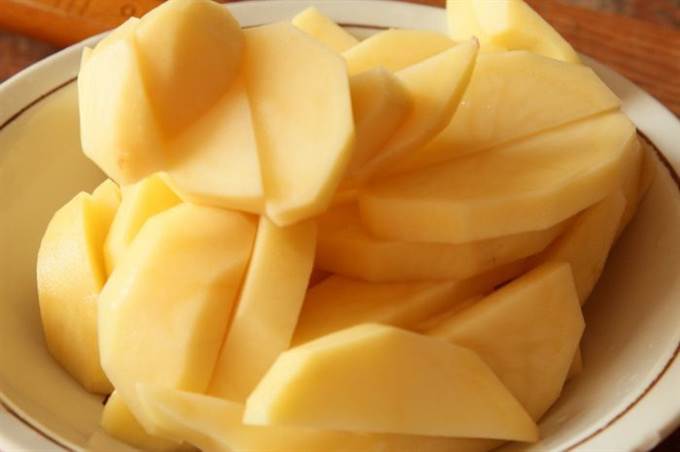 Картофель чистим и нарезаем так как вам нравится, но лучше не мелко. Тоже отправляем в кастрюлю. Добавляем воду снова так, чтобы все было слегка покрыто. Готовим под крышкой 30 минут.