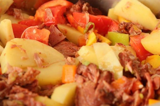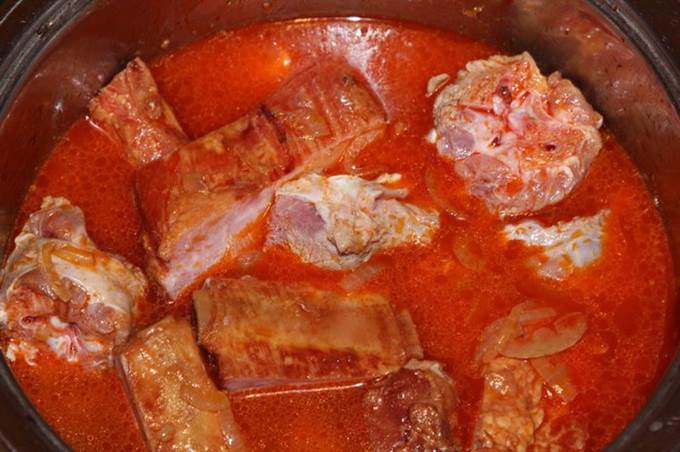 Добавляем воду так, чтобы мясо было покрыто практически полностью и доводим до кипения на сильном огне, затем делаем самый маленький огонь какой вы можете сделать и забываем про кастрюльку на 2, 5 часа. Правда, периодически нужно все-таки заглядывать в кастрюльку и помешивать…