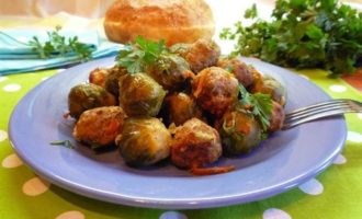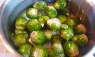 Брюссельскую капусту опустить в кипящую подсоленную воду и варить 10 минут.