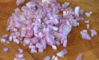 Шалот почистить и мелко порубить.