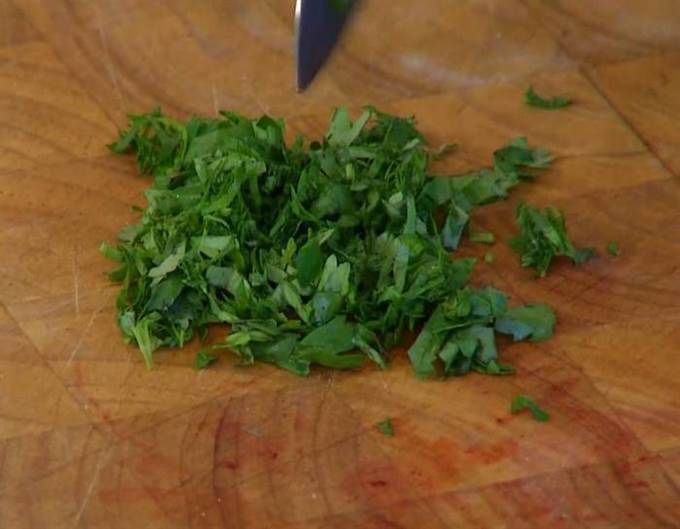 Кинзу мелко порубить.