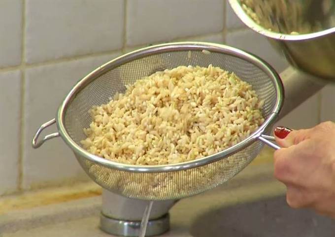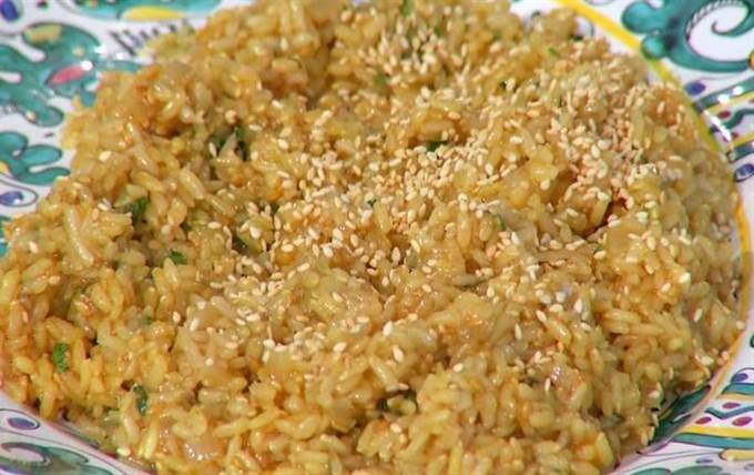 Перед подачей посыпать рис подсушенным кунжутом.
