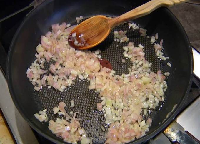 Шалот почистить и мелко порубить.