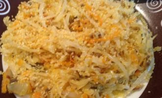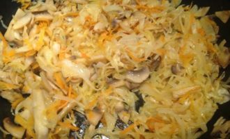 Добавить капусту и тушить до готовности, примерно 10-15 минут.