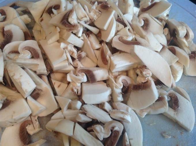 Пока сделаем фарш: шампиньоны порезать и обжарить на растительном масле.