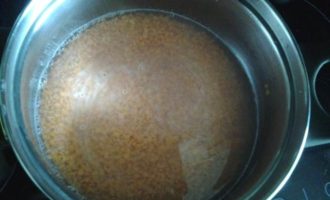 Чечевицу промыть, несколько раз меняя воду. Залить водой примерно на 2 см выше поверхности чечевицы. Оставить на 2 часа.