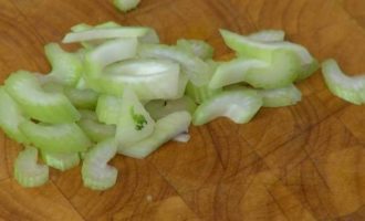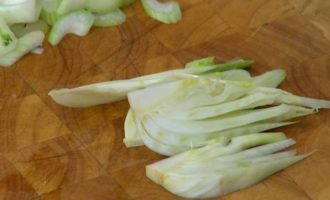 • Сельдерей и фенхель выложить к луку и обжарить все до прозрачности.
