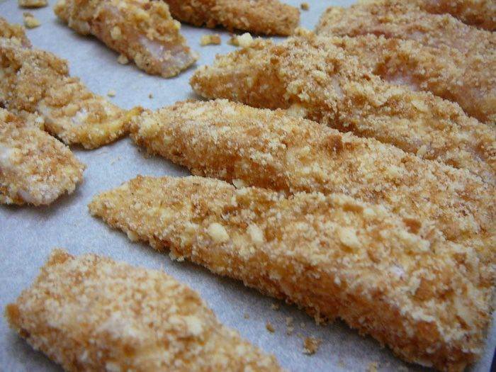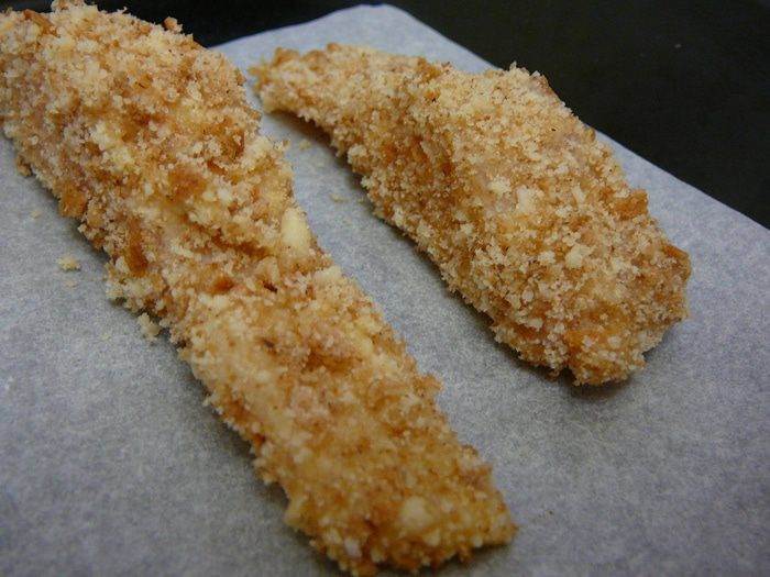 Выложить запанированную рыбу на противень застеленный пергаментом.