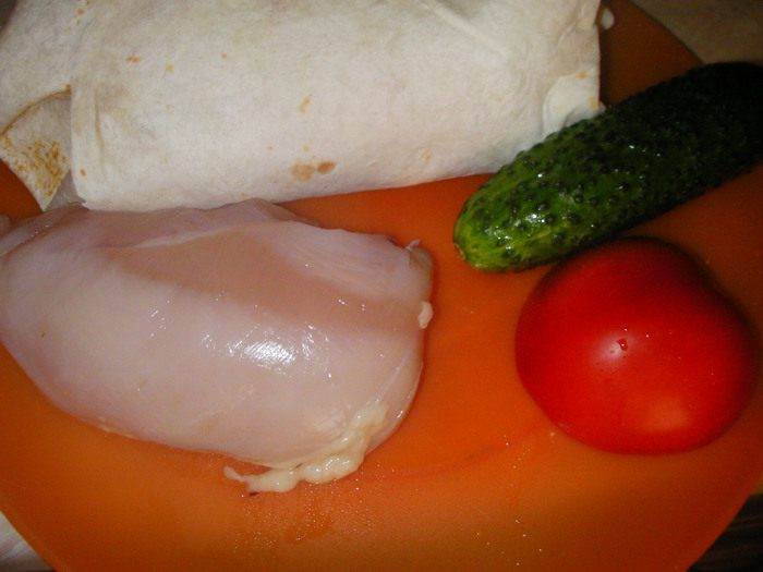 Смазываем лаваш кетчупом и майонезом, выкладываем начинку.