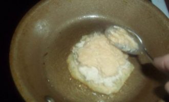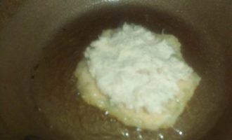 На разогретую сковороду наливаем масло раст. и выкладываем ложкой подготовленную картофельную массу.