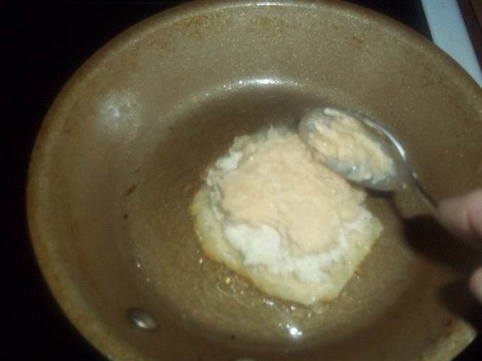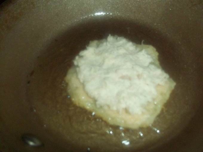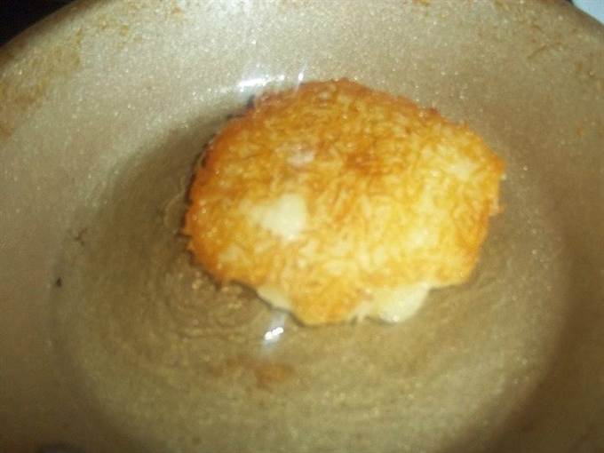 На разогретую сковороду наливаем масло раст. и выкладываем ложкой подготовленную картофельную массу.