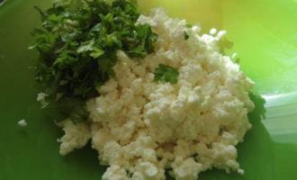 2. Творог растереть с солью и порезанной петрушкой.
