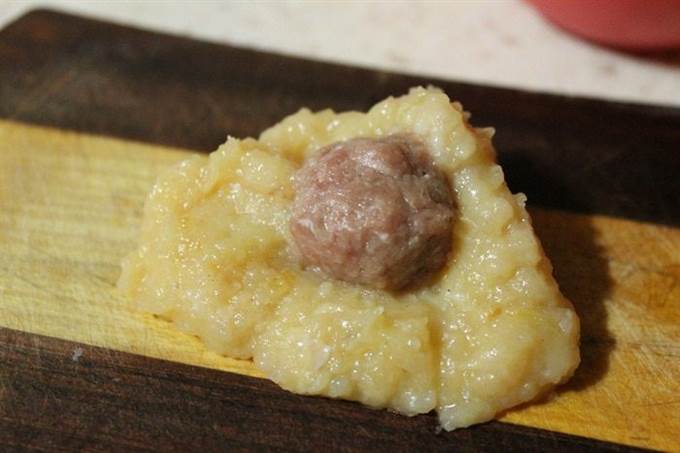 • Телятину, сыр и размоченный в молоке ломтик батона, измельчить в мясорубке. Посолить и поперчить по вкусу. Хорошо все вымешать и отставить в сторону.
