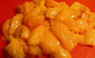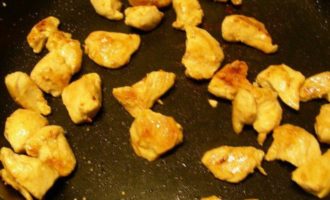 Куриное филе режем небольшими кусочками.