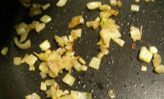 В той же сковороде обжариваем лук 3-4 минуты до мягкости.